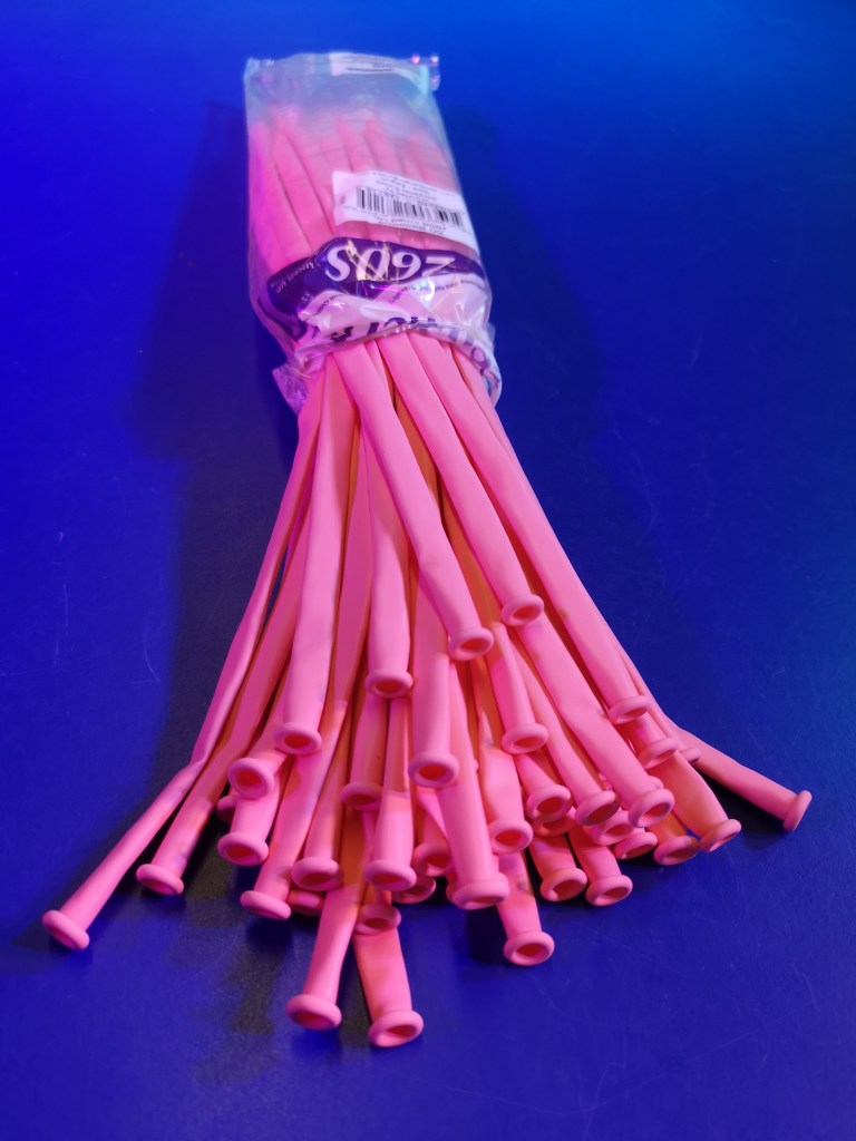 Ilmapallot Sempertex (myydään Oulussa) tai Qualatex 260Q. Pallojen koko 2 tumma paksuja ja 60 tumaa pitkiä! Pallot ovat lateksia, joten ne kestävät paremmin.